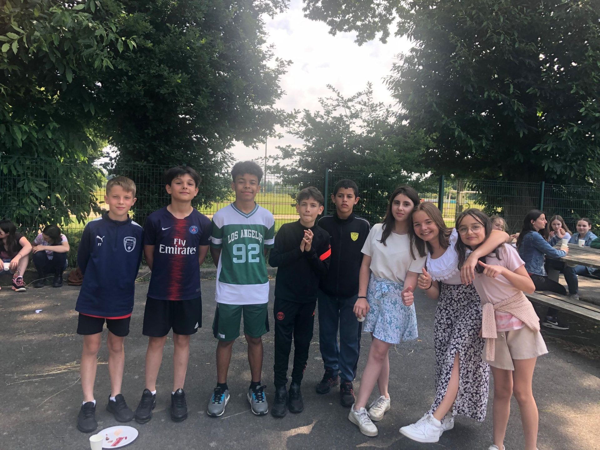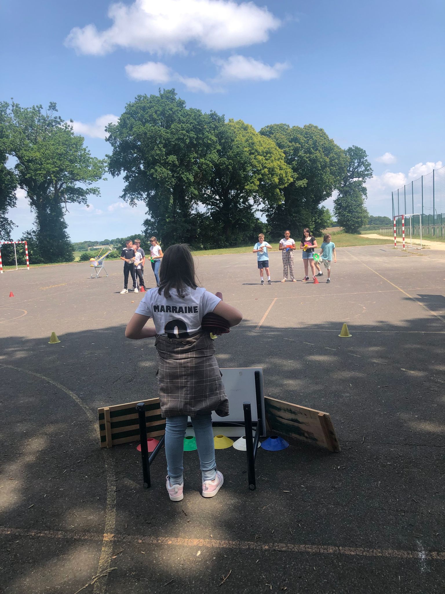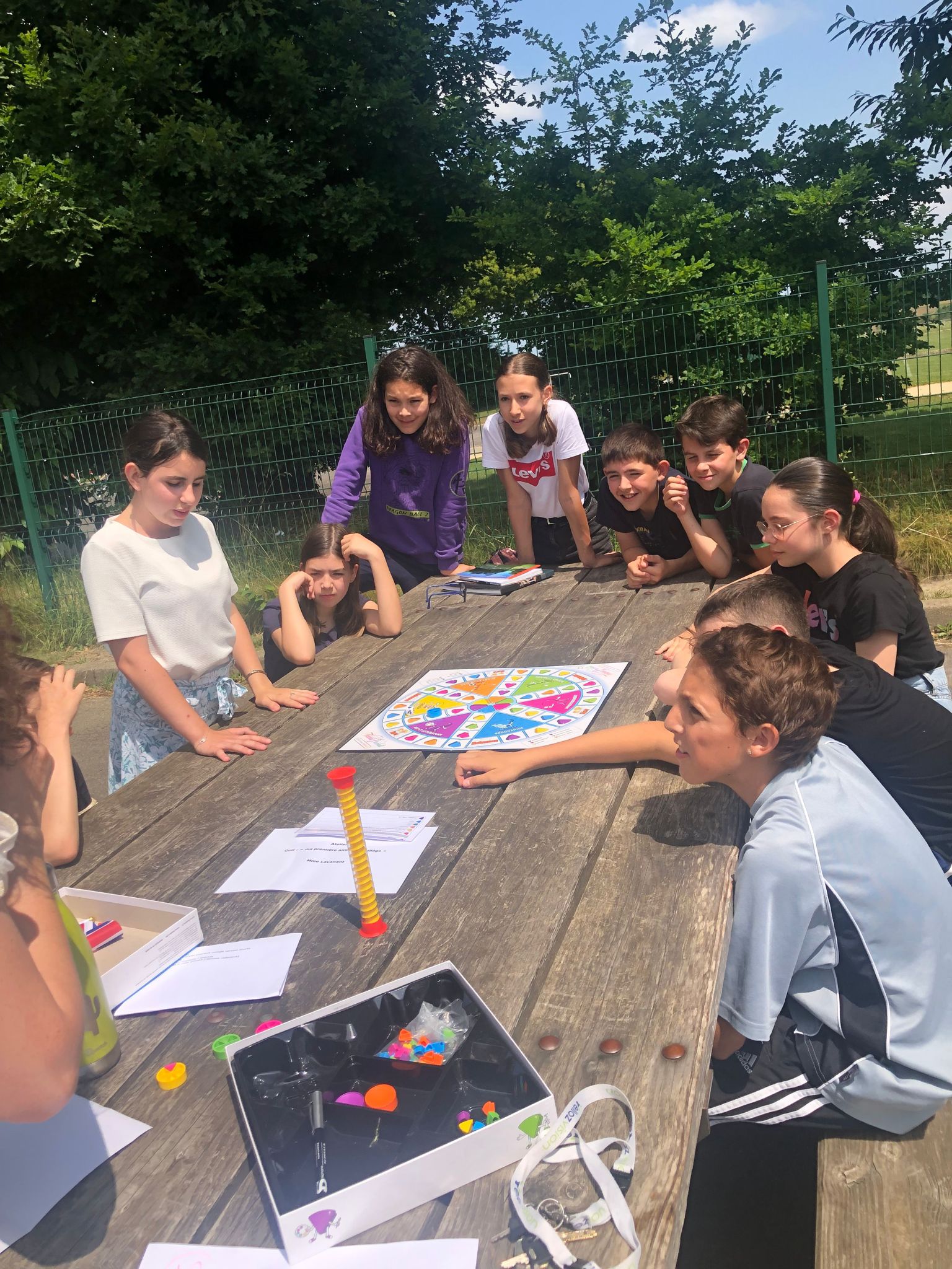 L’après-midi, alors que nos élèves de 3e révisaient âprement le DNB, les élèves de 6e ont participé par groupe à des ateliers en plein air : in english please !, atelier calcul mental, trivial poursuit « mon année au collège », atelier just one, jeux géants coopératifs, parcours.