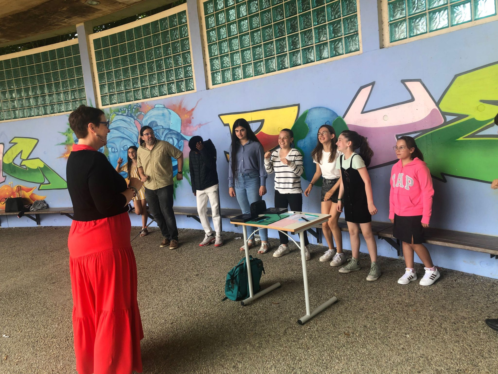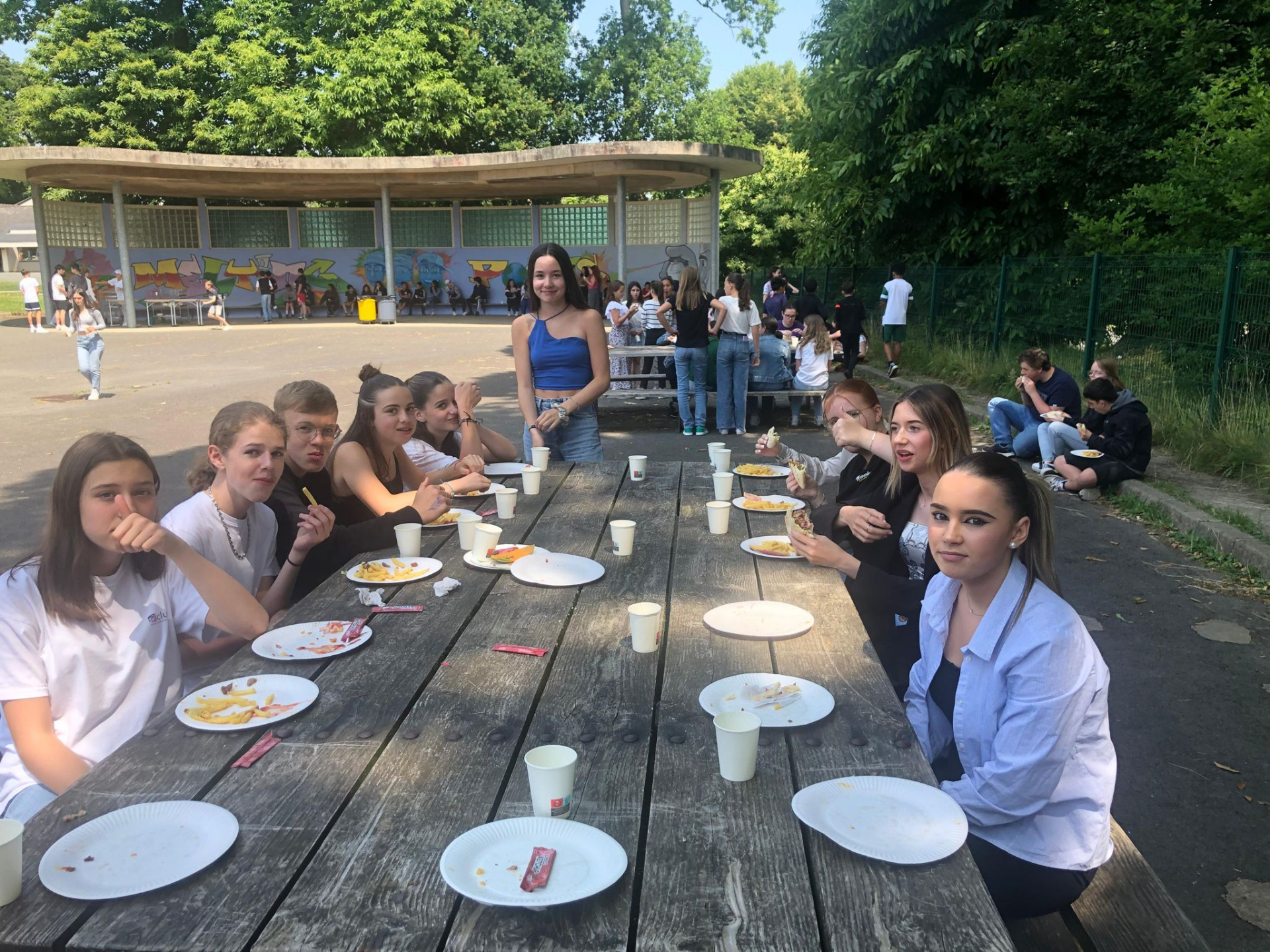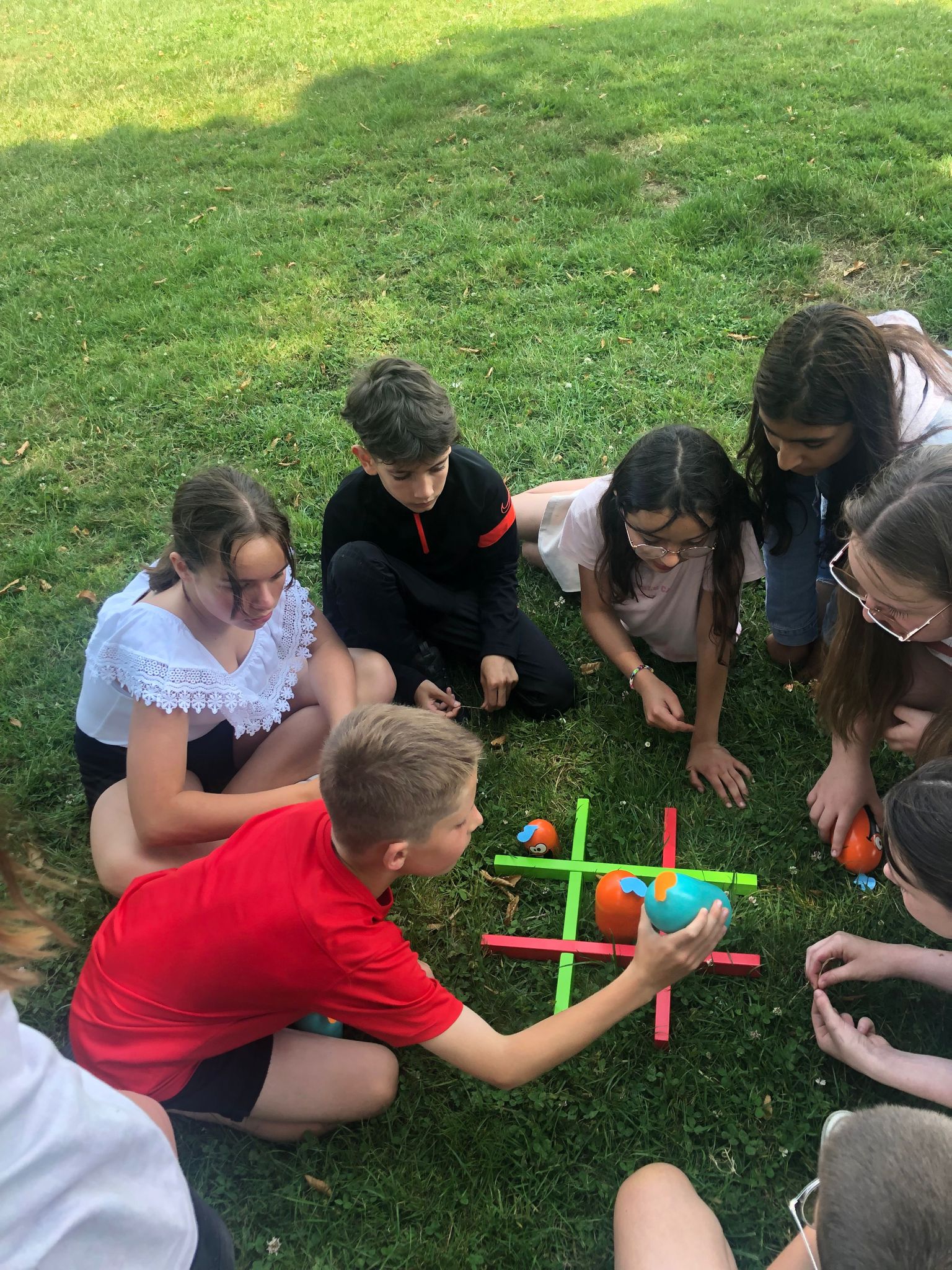 L’après-midi, alors que nos élèves de 3e révisaient âprement le DNB, les élèves de 6e ont participé par groupe à des ateliers en plein air : in english please !, atelier calcul mental, trivial poursuit « mon année au collège », atelier just one, jeux géants coopératifs, parcours.